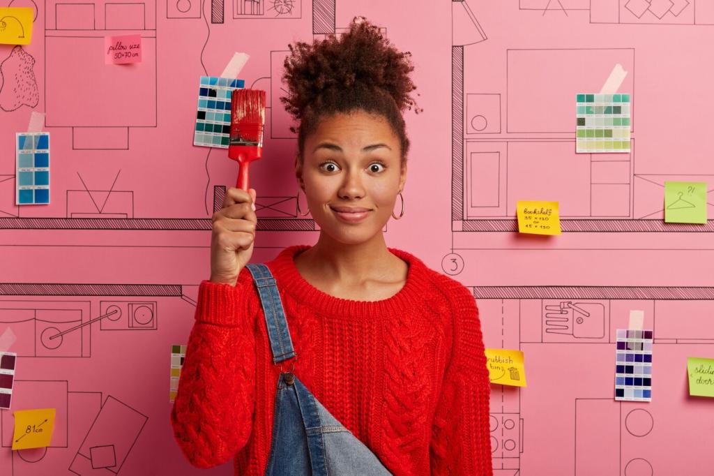 Leiten Sie vom Gefühl zur Lösung: ein warmes, gedämpftes Spektrum, drei Materialien, ein Akzent. Ergänzen Sie kurze Begründungen pro Element. Abonnieren Sie, um unsere Moodboard-Vorlage zu erhalten und posten Sie Ihre nächste Palette zum Feedback.